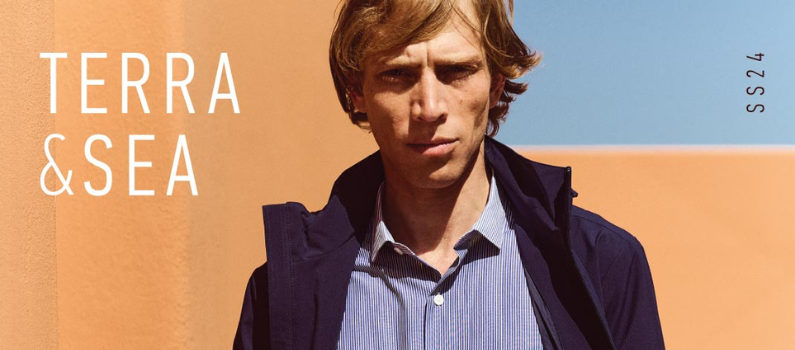 Η ζεστασιά της μαροκινής τερακότας συναντά το μπλε του Αιγαίου σε μια σειρά από ιδιαίτερα ρούχα που κάνουν αυτό το καλοκαίρι ξεχωριστό. Στην “Terra & Sea” πρωταγωνιστούν τα φαρδιά πουκάμισα με ελαφριά υφάσματα και απαλές υφές. Ρίγες σε απρόσμενους συνδυασμούς, διακριτικά μοτίβα και δροσερές ποπλίνες φέρνουν τη Μεσόγειο στην καθημερινή εμφάνιση των αντρών, ενώ η σειρά misto lino με τα φαρδιά cargo παντελόνια και τις άνετες βερμούδες έχει τις γήινες αποχρώσεις του πηλού και της άμμου.